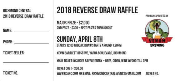 2018 Reverse Draw Raffle - Richmond Central Football & Netball Club